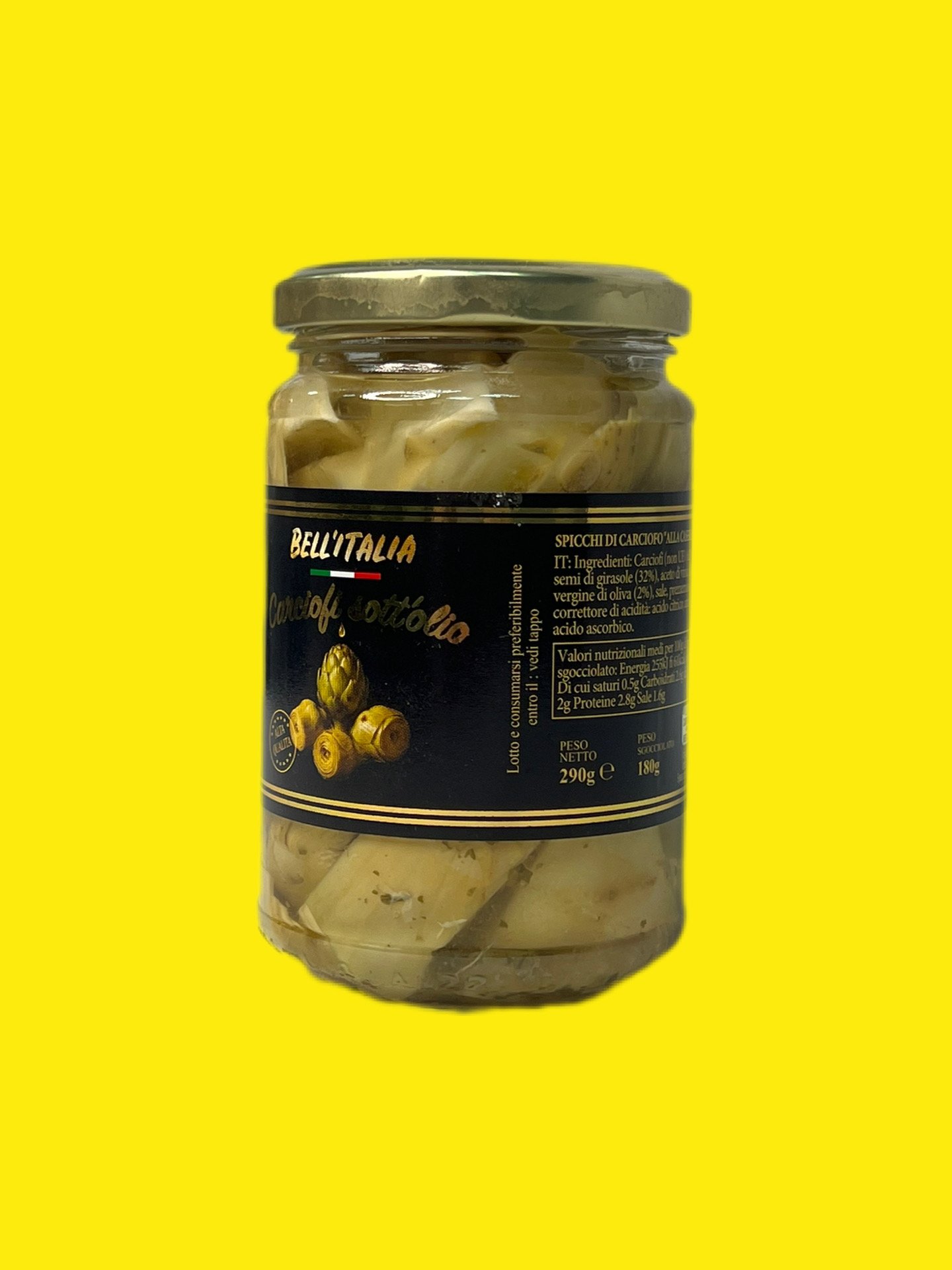 Кожен артишок, вирощений з дбайливістю та любов’ю, особливим чином обробляється в олії, щоб створити неперевершений смаковий досвід.
