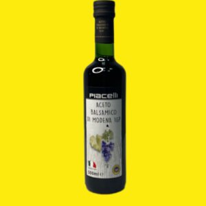 Бальзамічний оцет Piacelli (500 мл) у скляній пляшці — це італійський продукт, що виготовляється на основі червоного винного оцту, часто з використанням сучасних методів термообробки.