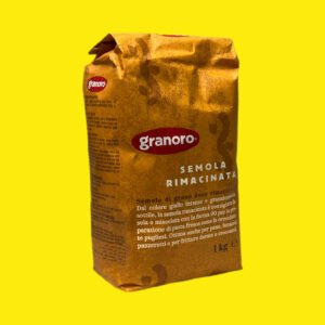 Борошно семола Granoro Semola Rimacinata — це італійське борошно грубого помелу з твердих сортів пшениці, що має жовтуватий відтінок і зернисту текстуру. Воно ідеальне для домашньої пасти, фокаччі, хліба та присипки столу. Завдяки високому вмісту клейковини, воно забезпечує пружність тіста та чудово вбирає воду.
