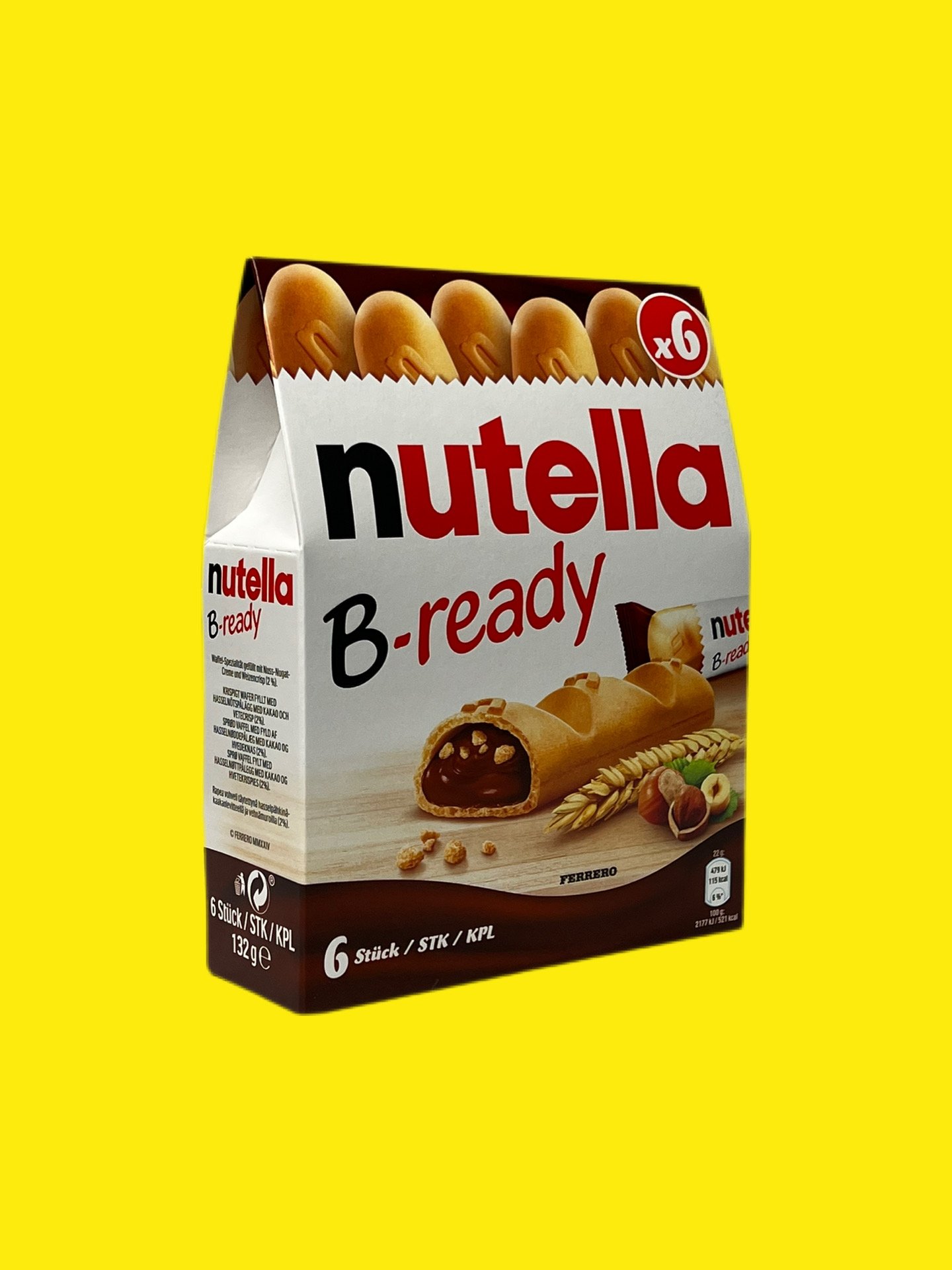 Батончики Nutella B-Ready – ніжні хрусткі батончики, наповнені шоколадною пастою Нутелла з лісовими горіхами і вафельними криспами. Поєднання тонкої вафлі, повітряної текстури та насиченого шоколадно-горіхового смаку робить цей десерт найкращим варіантом для швидкого перекусу вдома, на роботі або в дорозі.