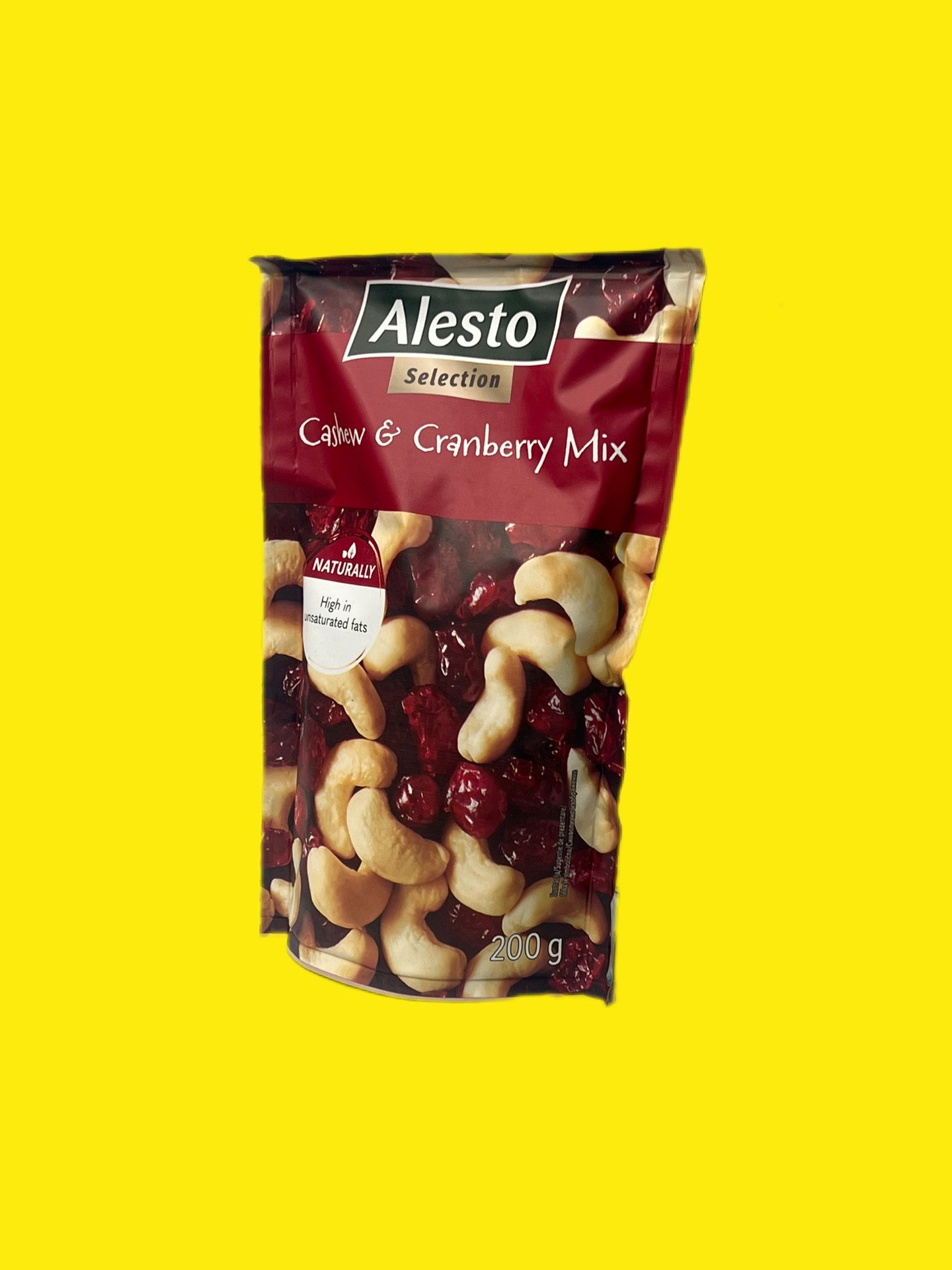 Мікс кеш’ю та журавлини від торгової марки Alesto – справжній бум смакових якостей та корисних речовин.