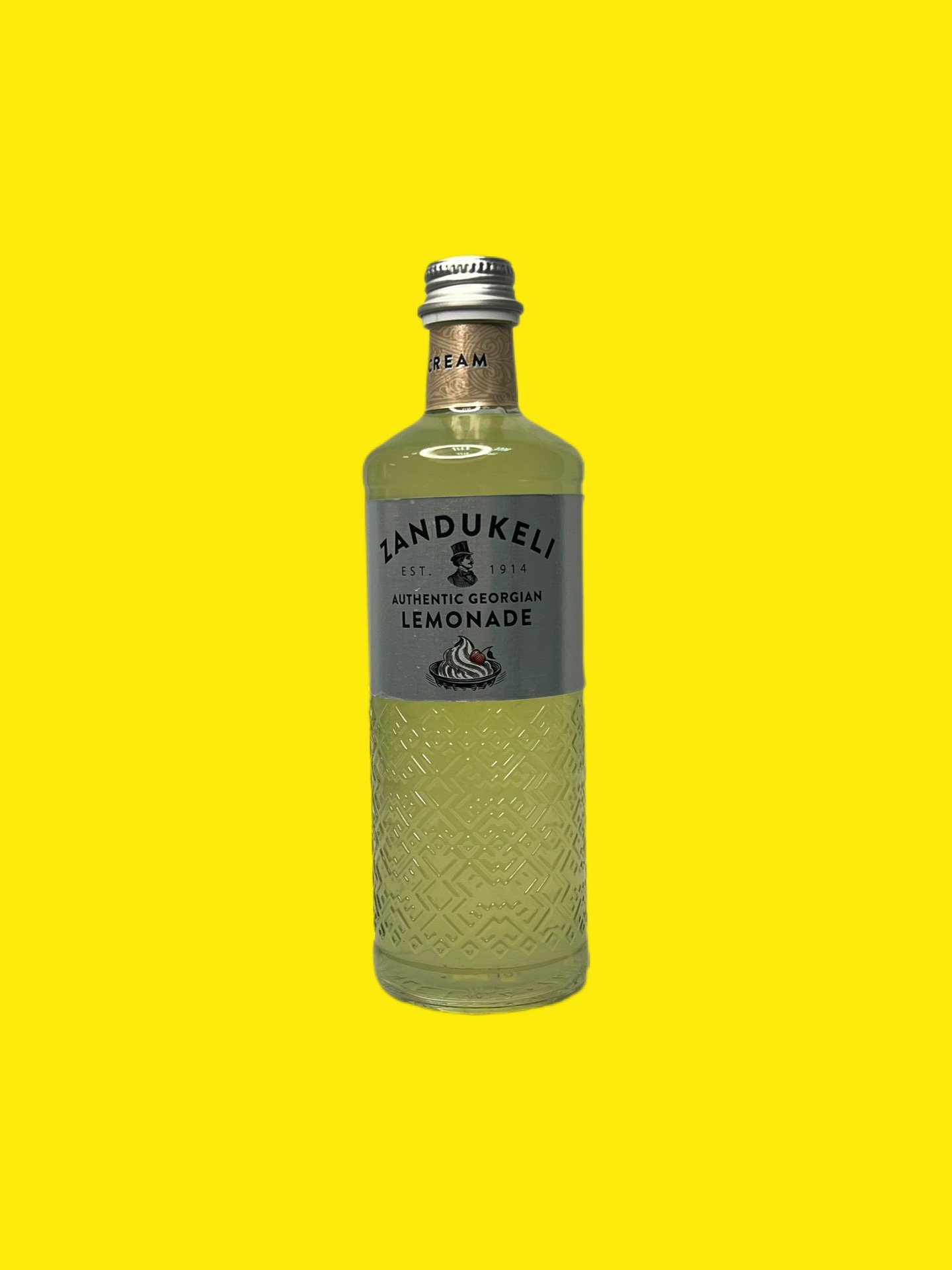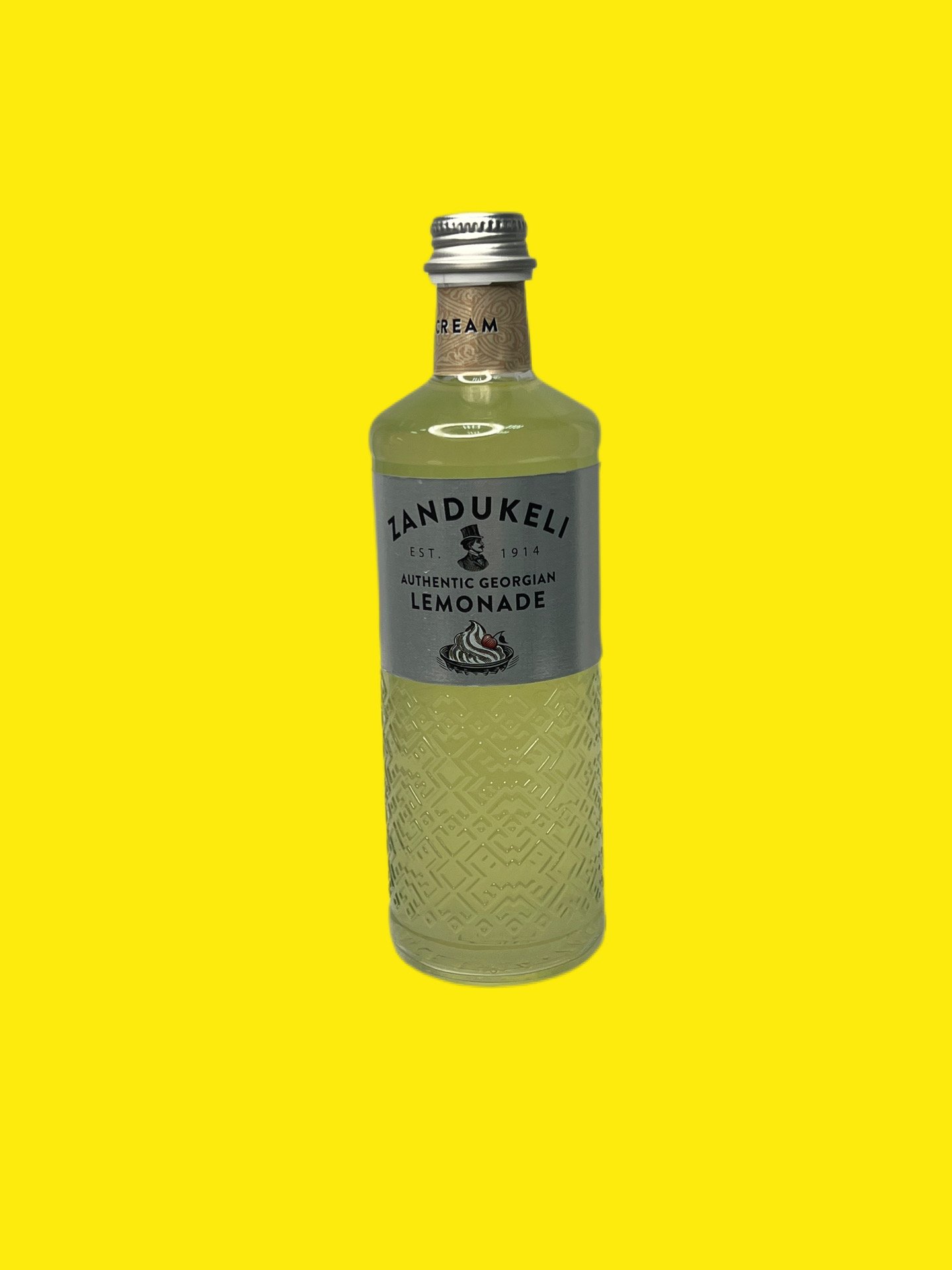 Грузинський лимонад Крем-сода Зандукелі — це безалкогольний сильногазований напій з витонченим ванільно-карамельним смаком, що нагадує морозиво. Виготовляється за оригінальною грузинською рецептурою, має ніжну текстуру та солодкий аромат.