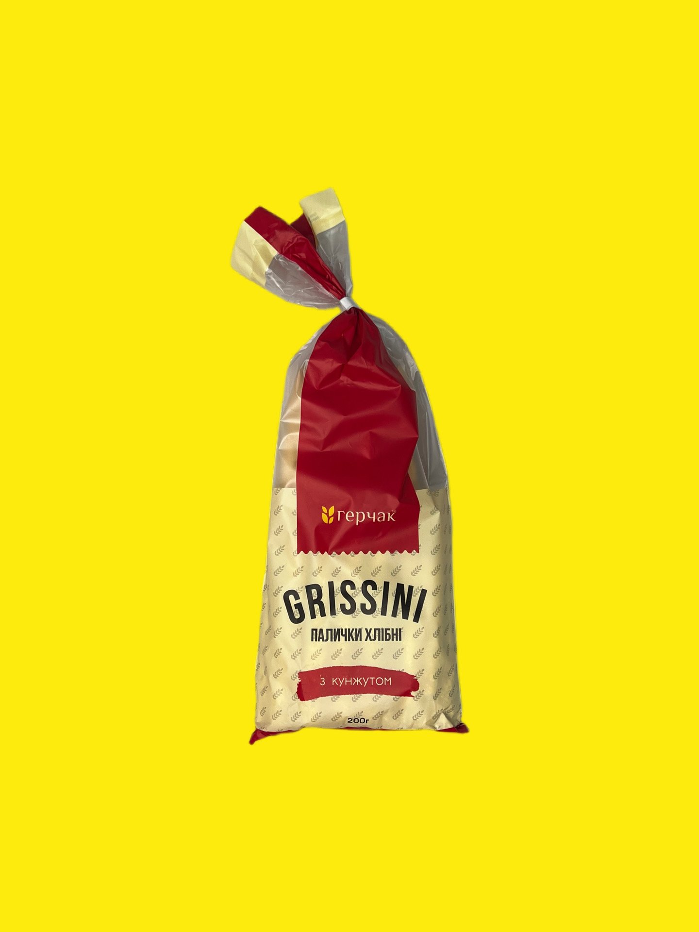Грісіні «Герчак» з кунжутом (200 г) — це українські хлібні палички з пшеничного борошна вищого гатунку, доповнені кунжутом.