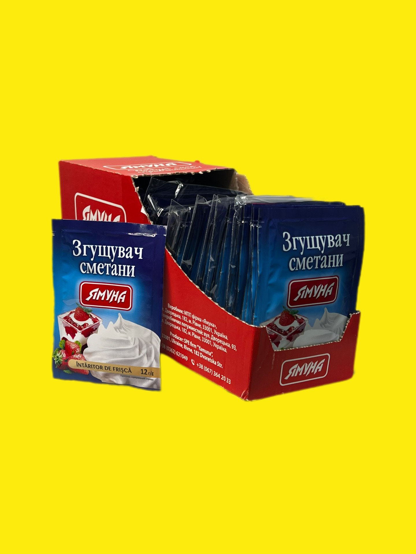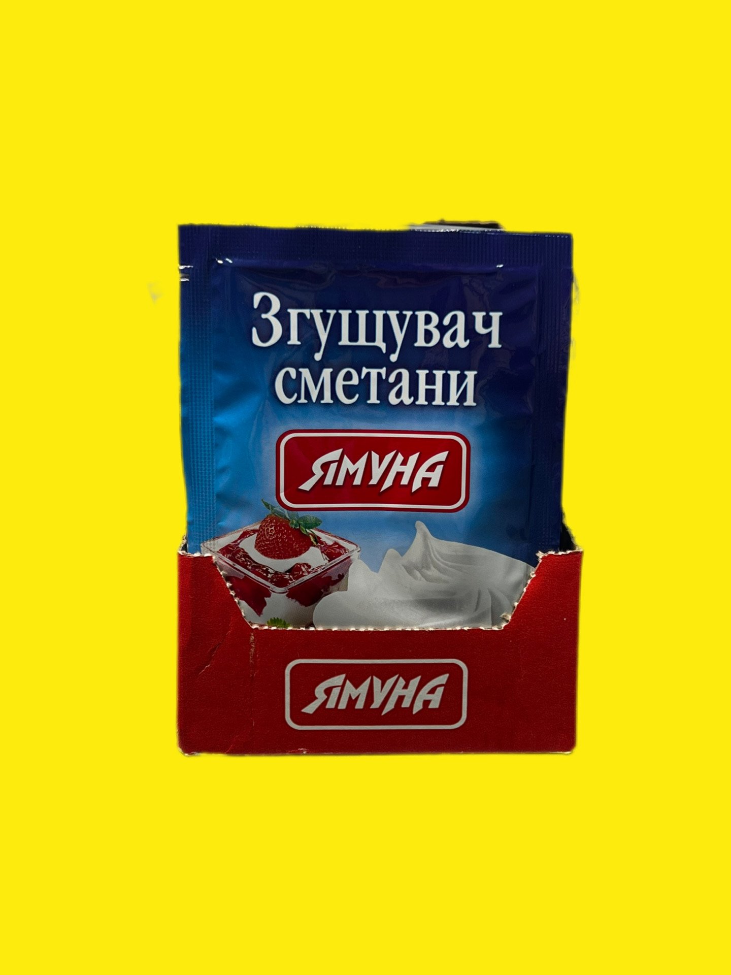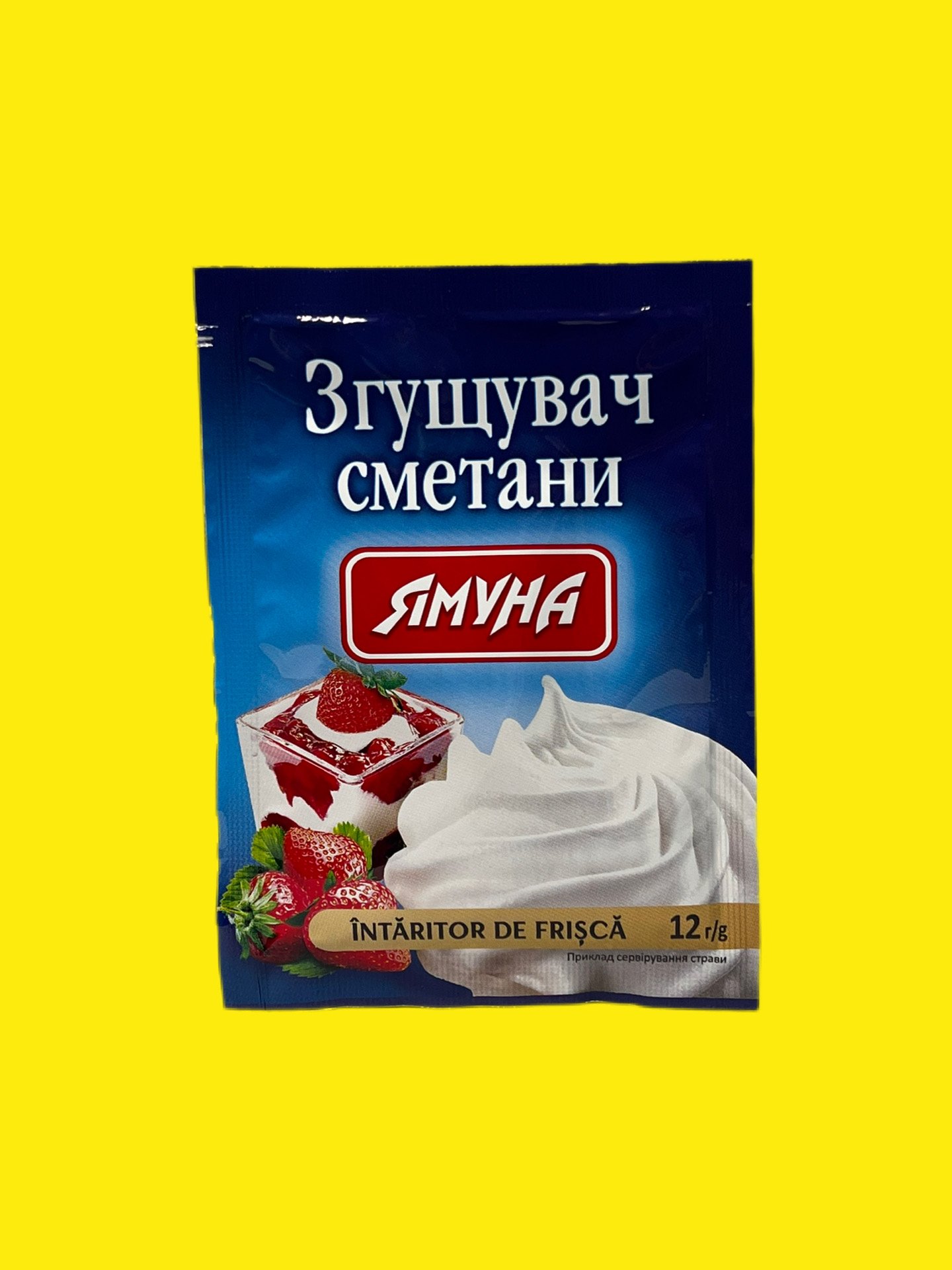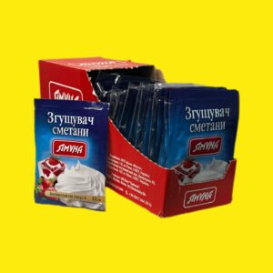 Згущувач сметани «Ямуна» (12 г) — це харчова суміш на основі модифікованого крохмалю та цукрової пудри, призначена для швидкого надання густої, кремоподібної консистенції сметані чи вершкам, запобігаючи розшаруванню. Одного пакета вистачає на 250–400 мл продукту.