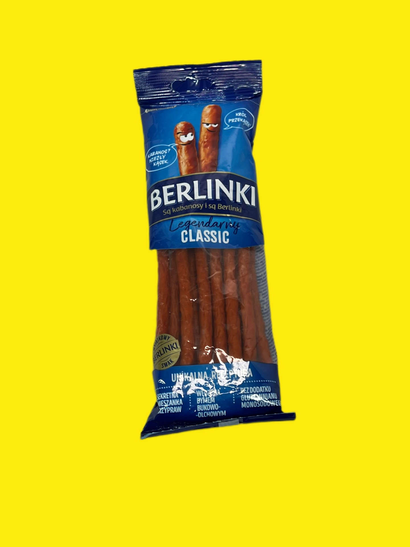 Кабаноси Berlinki – це тонкі, ароматні ковбаски, виготовлені за традиційним рецептом із добірної свинини та спецій. Вони мають щільну, пружну текстуру і насичений копчений смак, завдяки ретельному процесу натурального дозрівання та копчення на буковій трісці.