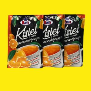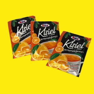 Кисіль апельсин — це швидкорозчинний польський десерт, що забезпечує насичений цитрусовий смак та аромат. Вміст пакетика розрахований на приготування 200-250 мл (або до 500 мл залежно від бажаної густоти) гарячого чи холодного напою за лічені хвилини.