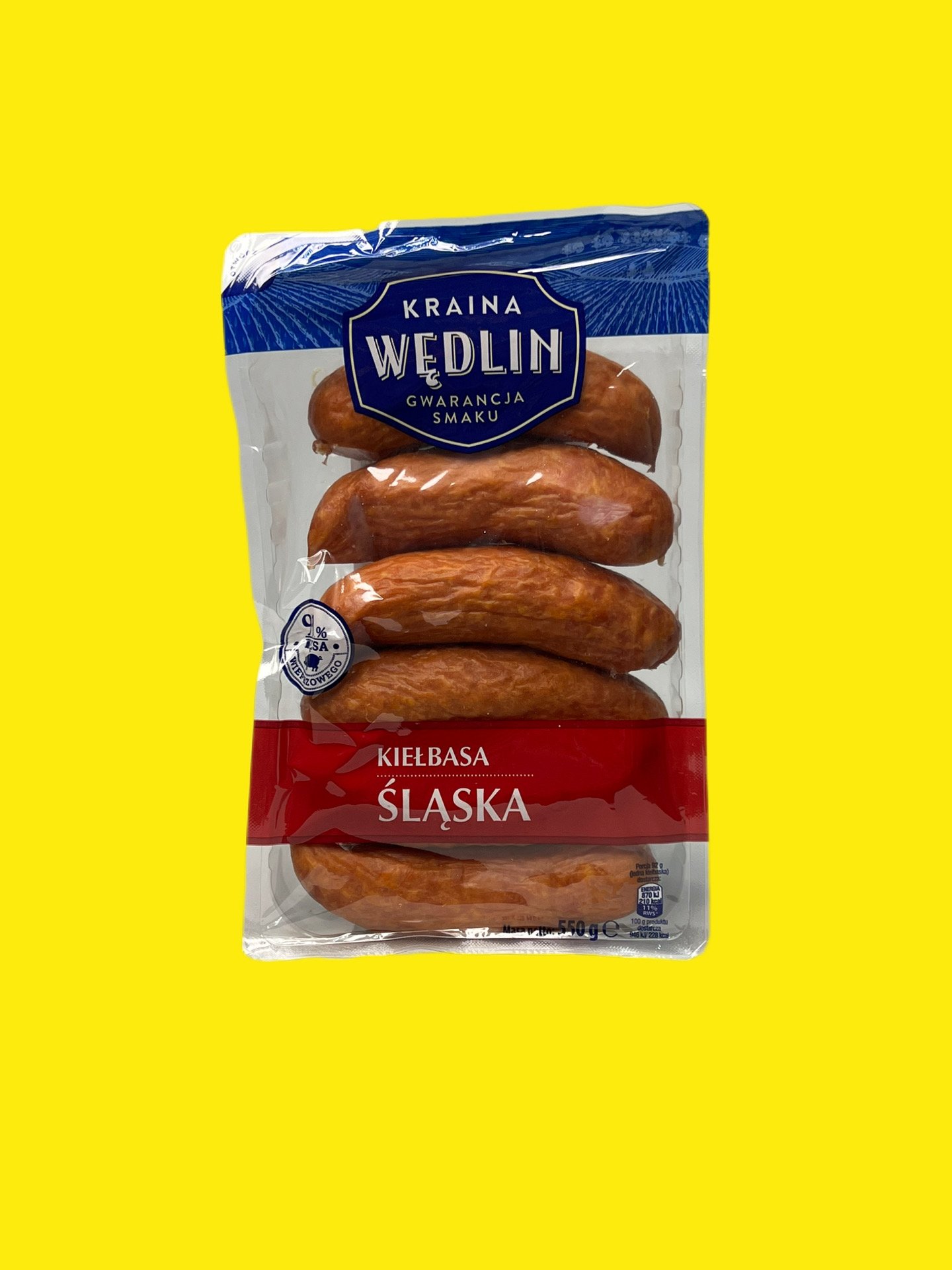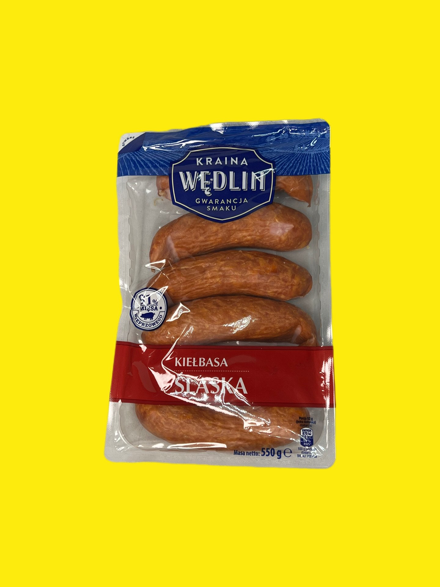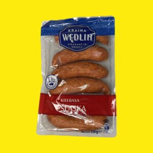 Ковбаса Сласька Країна Ведлін — це високоякісна польська підкопчена свиняча ковбаса (91% м’яса), що характеризується середнім помелом, ароматом диму та нотками часнику. Продається у вакуумній упаковці вагою 550 г, чудово підходить для смаження, грилю або споживання у гарячих стравах.