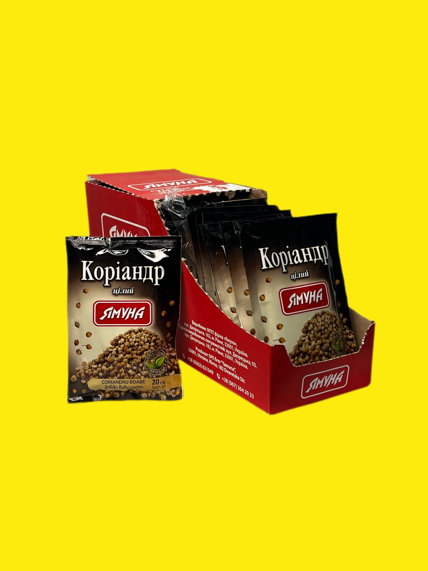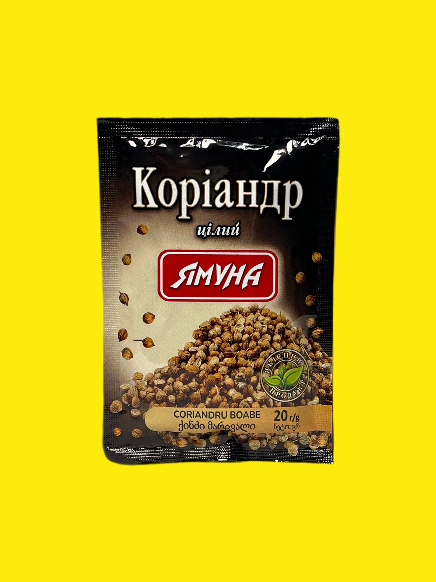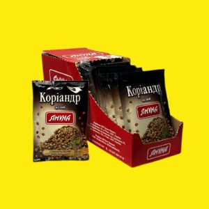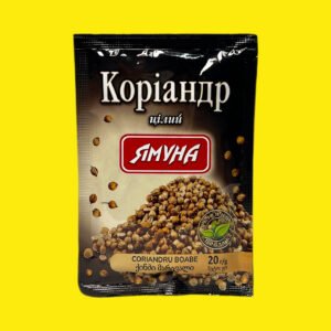 Коріандр горошком Ямуна це натуральна пряність (ціле насіння), що має приємний аромат та пікантний смак. Використовується для маринування овочів, грибів, соління риби, а також у випічці, супах та стравах з бобових.