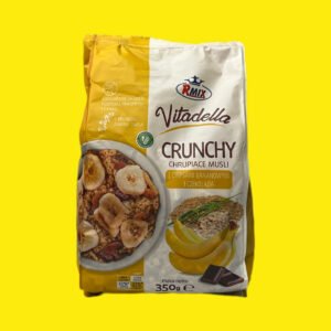 Кранчі шоколадні з бананом Vitanella Rmix із шоколадом та бананом — це хрусткий вівсяний сніданок, що складається із запечених злаків, шматочків сушеного банана та молочного шоколаду. Це прекрасний продукт для сніданку, смачний і здоровий снек, який можна споживати в сухому вигляді, або з молоком, йогуртом, чаєм або соком і дітям, і дорослим.