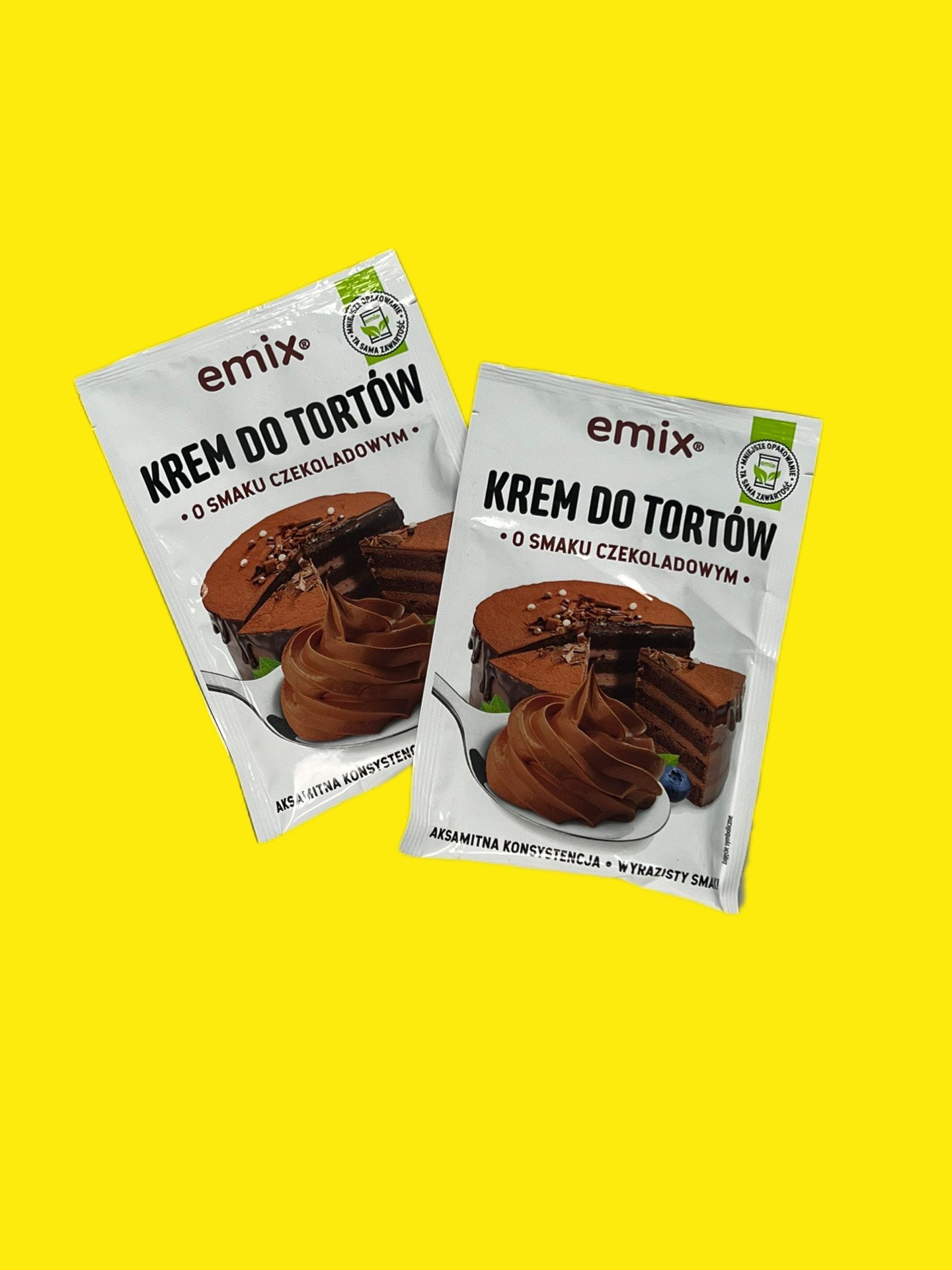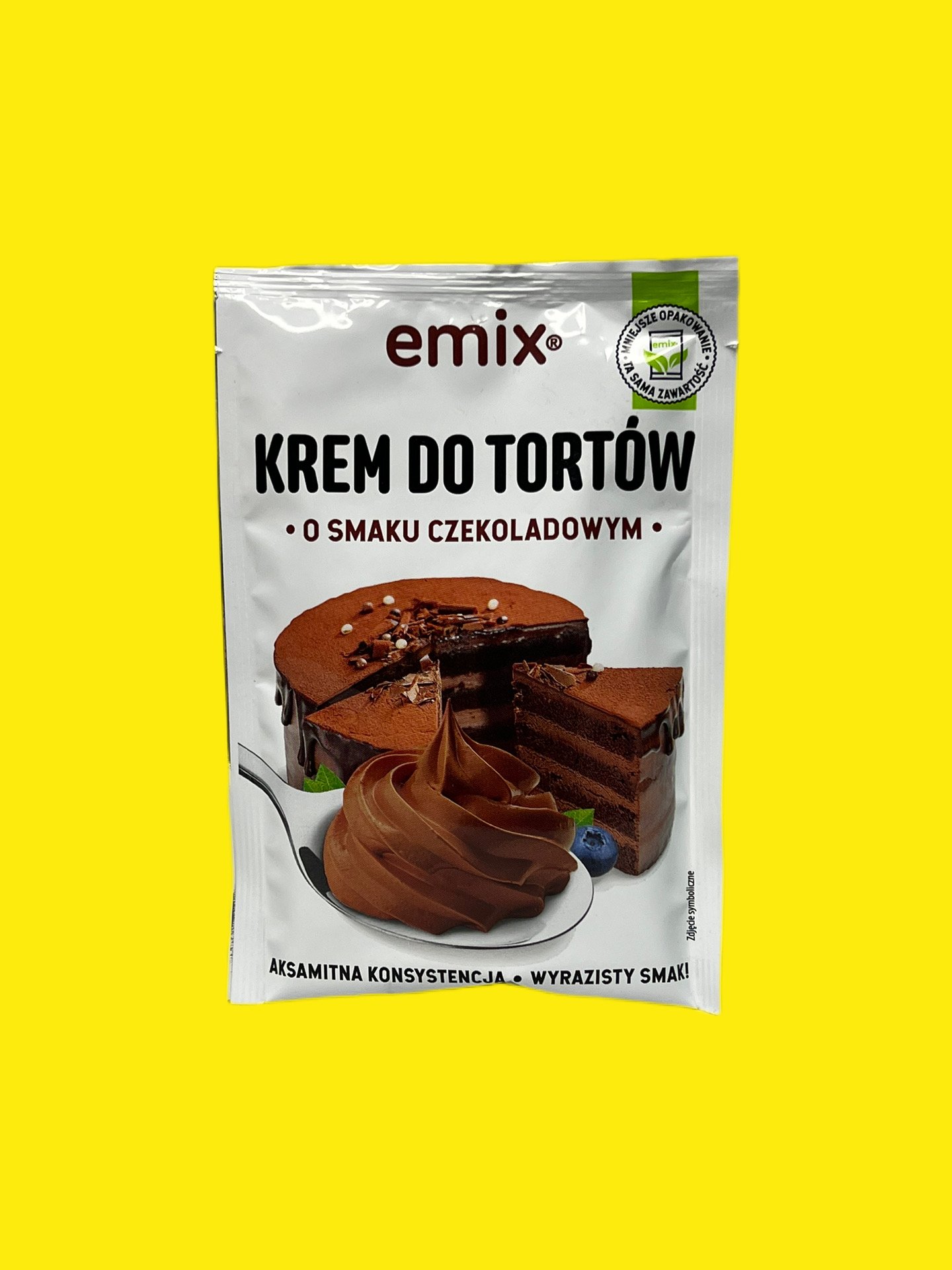 Крем для тортів Emix — це порошкоподібна суміш польського виробництва для швидкого приготування десертного крему. Він вирізняється стабільною консистенцією, що робить його придатним як для прошаровування коржів, так і для прикрашання кондитерських виробів.