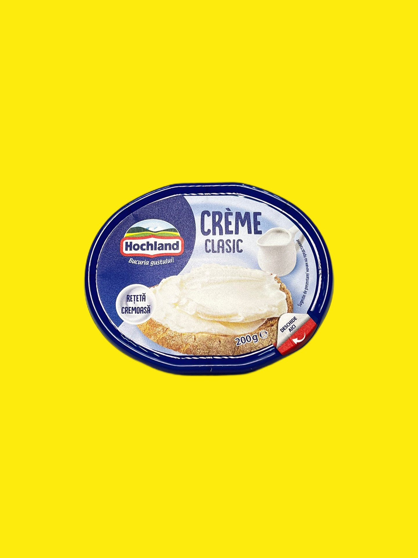 Крем-сир можна брати на пікнік або в тривале відрядження. Шматочок чорного хліба з цим продуктом надовго наситять Ваш організм, додадуть сил і енергії. Крем-сир Hochland випускається у пластиковій баночці з кришкою. Герметично закрита кришка запобігає попаданню вологи і сторонніх запахів у холодильнику. Однієї баночки крем-сиру вистачить на 6 – 7 бутербродів.