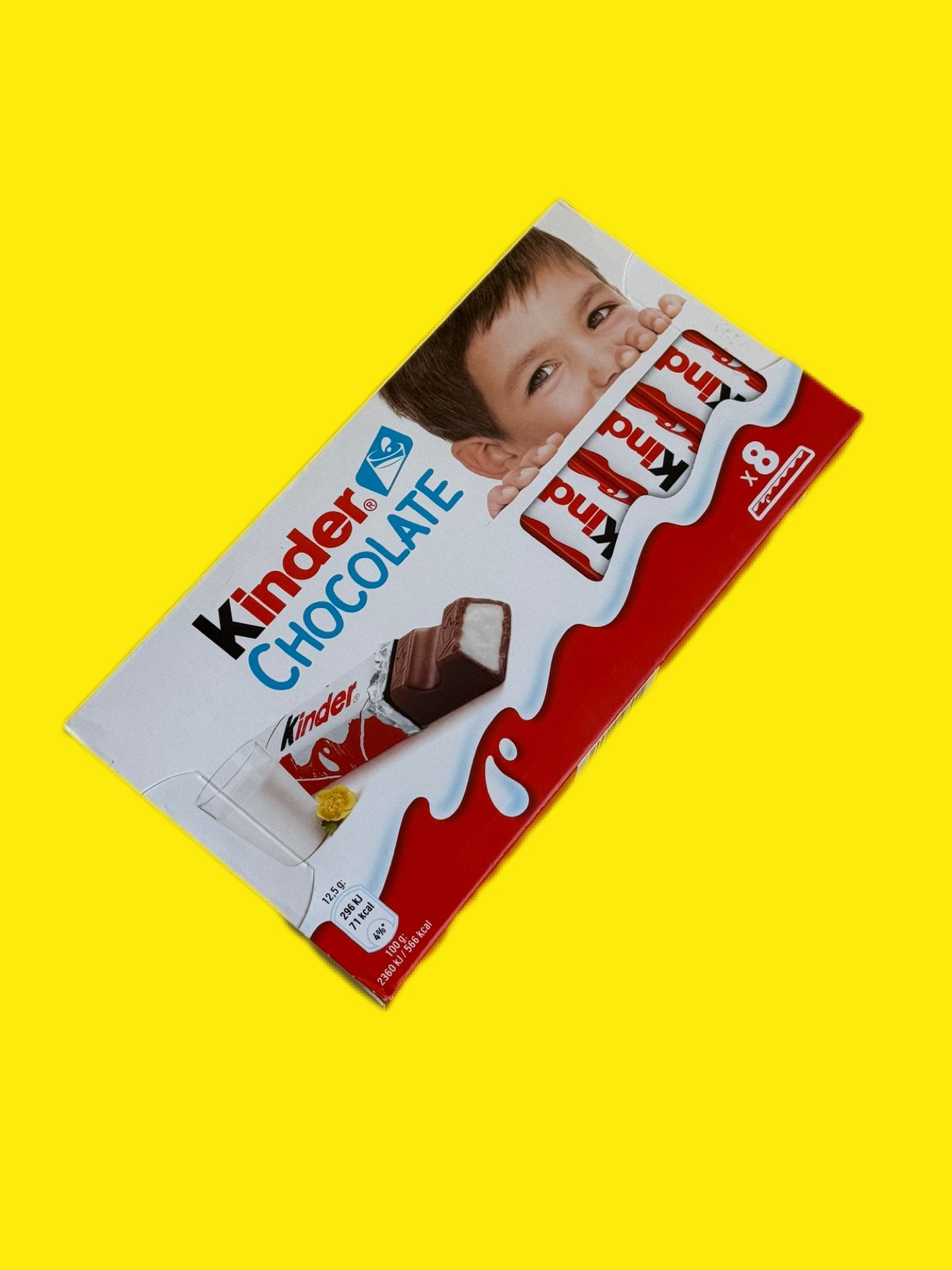 Kinder Chocolate T8 — це упаковка з восьми невеликих батончиків молочного шоколаду з молочною начинкою, загальною вагою 100 грамів. Шоколад виробляється компанією Kinder, відомий високою якістю, ніжною текстурою та унікальним смаком.