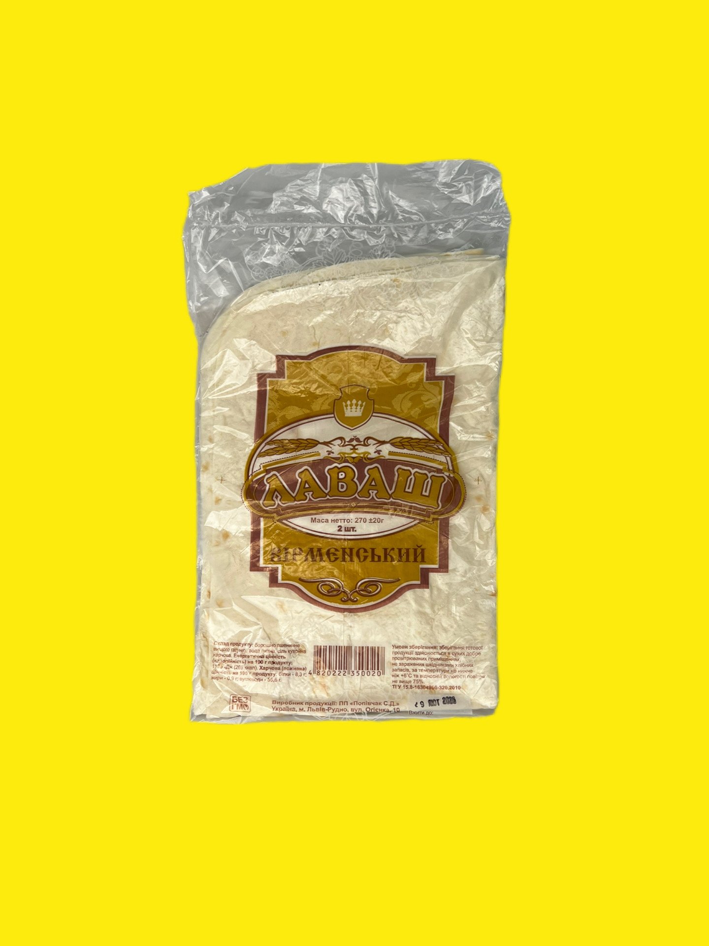 Лаваш Вірменський — традиційний прісний білий хліб у вигляді тонкого листа, виготовлений за бездріжджовою технологією.