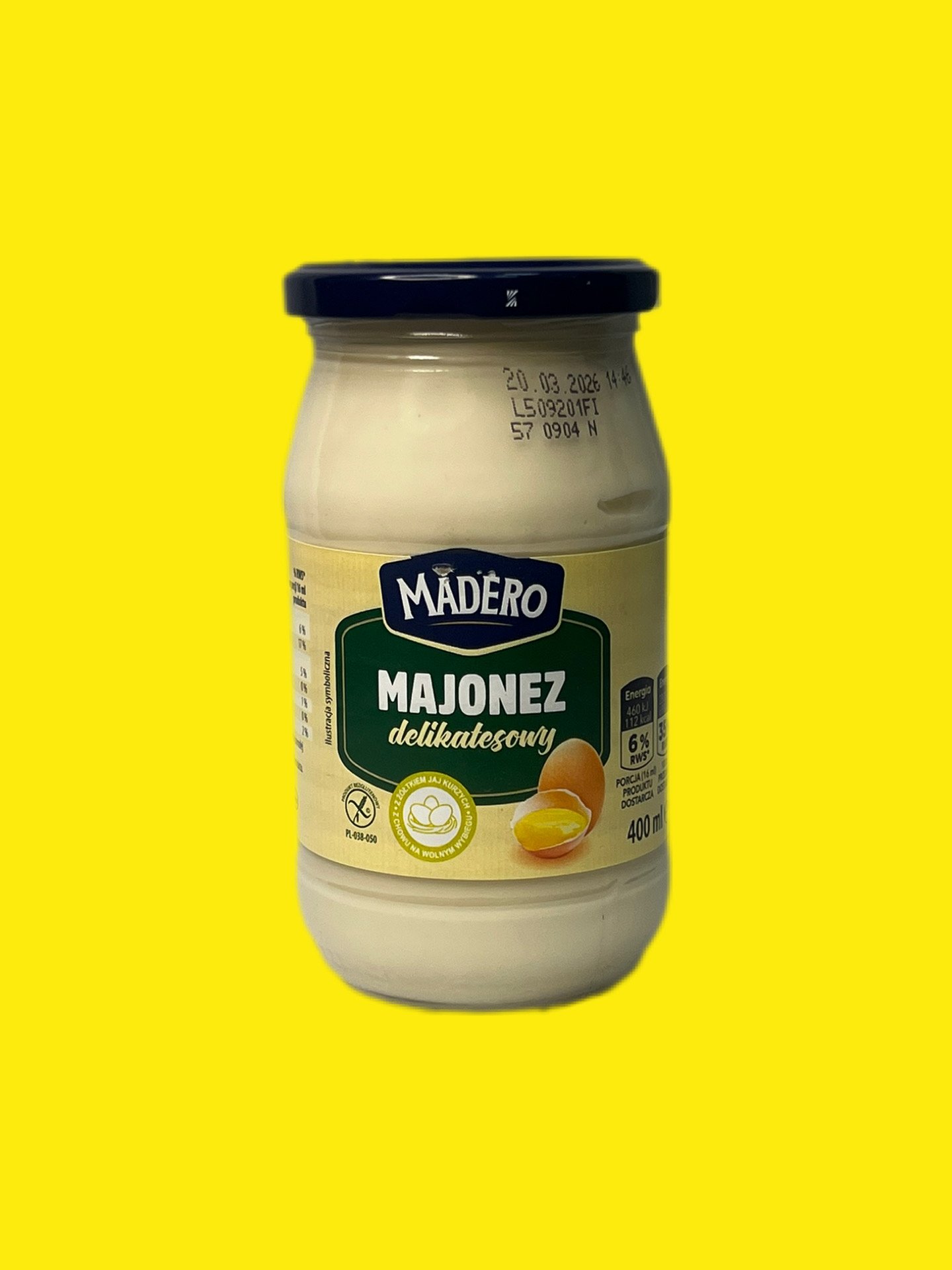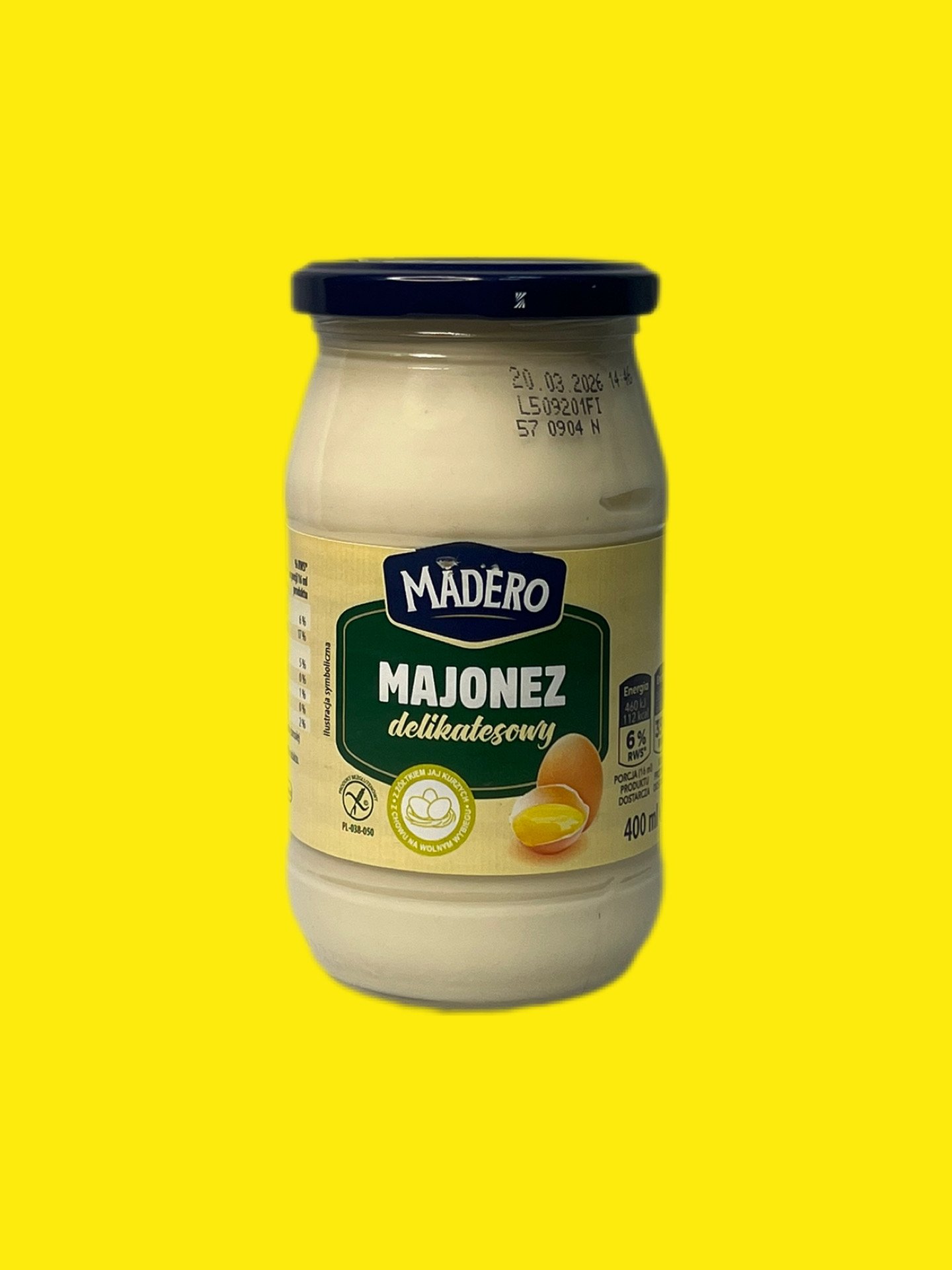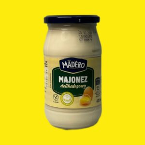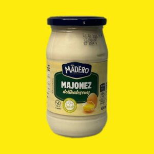 Майонез Madero Delikatesowy (делікатесний) у скляній банці 400 мл — це високоякісний польський продукт із насиченим смаком і густою кремовою консистенцією. Виготовляється на основі натуральних яєчних жовтків (6%) та рапсової олії (79%), не містить глютену.