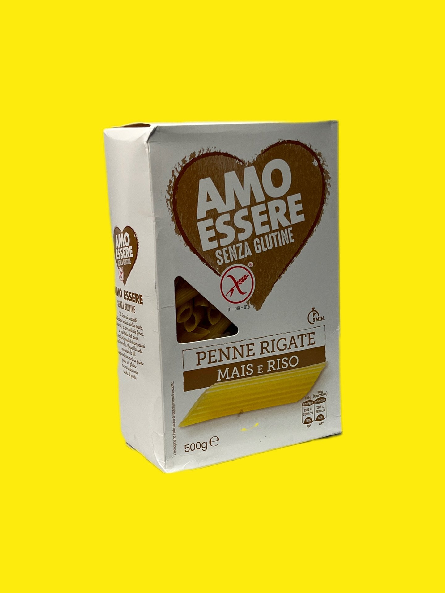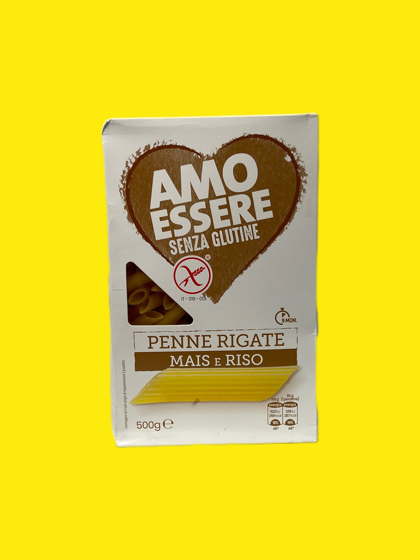 Макарони безглютенові Амо Ессере – безглютенові макарони у формі трубочок, зрізаних під кутом, з білої кукурудзи, жовтої кукурудзи та рису, за ексклюзивною рецептурою, зі збалансованим смаком та консистенцією. Макарони такої форми чудово смакують як з важкими, так і з легкими соусами.