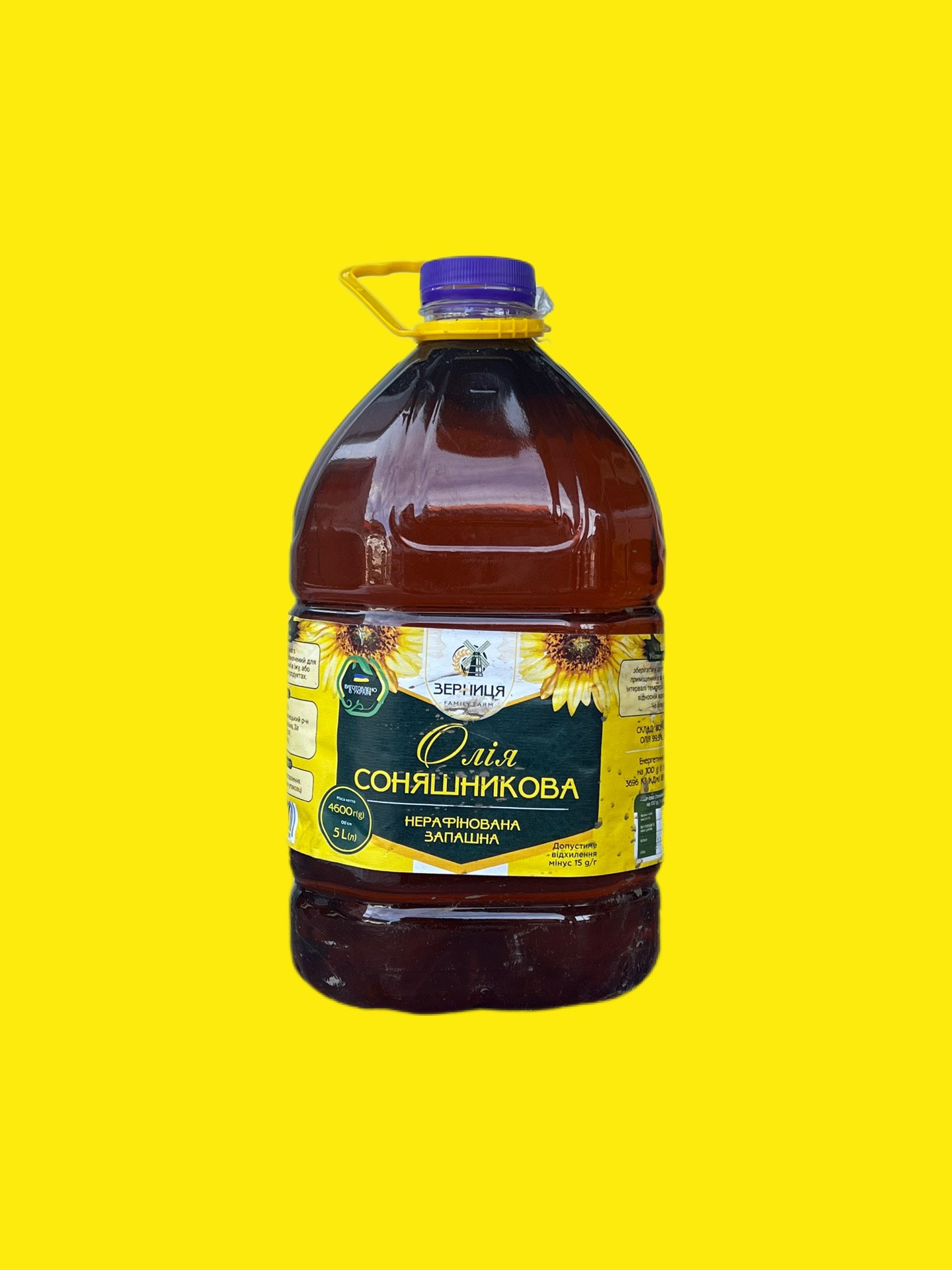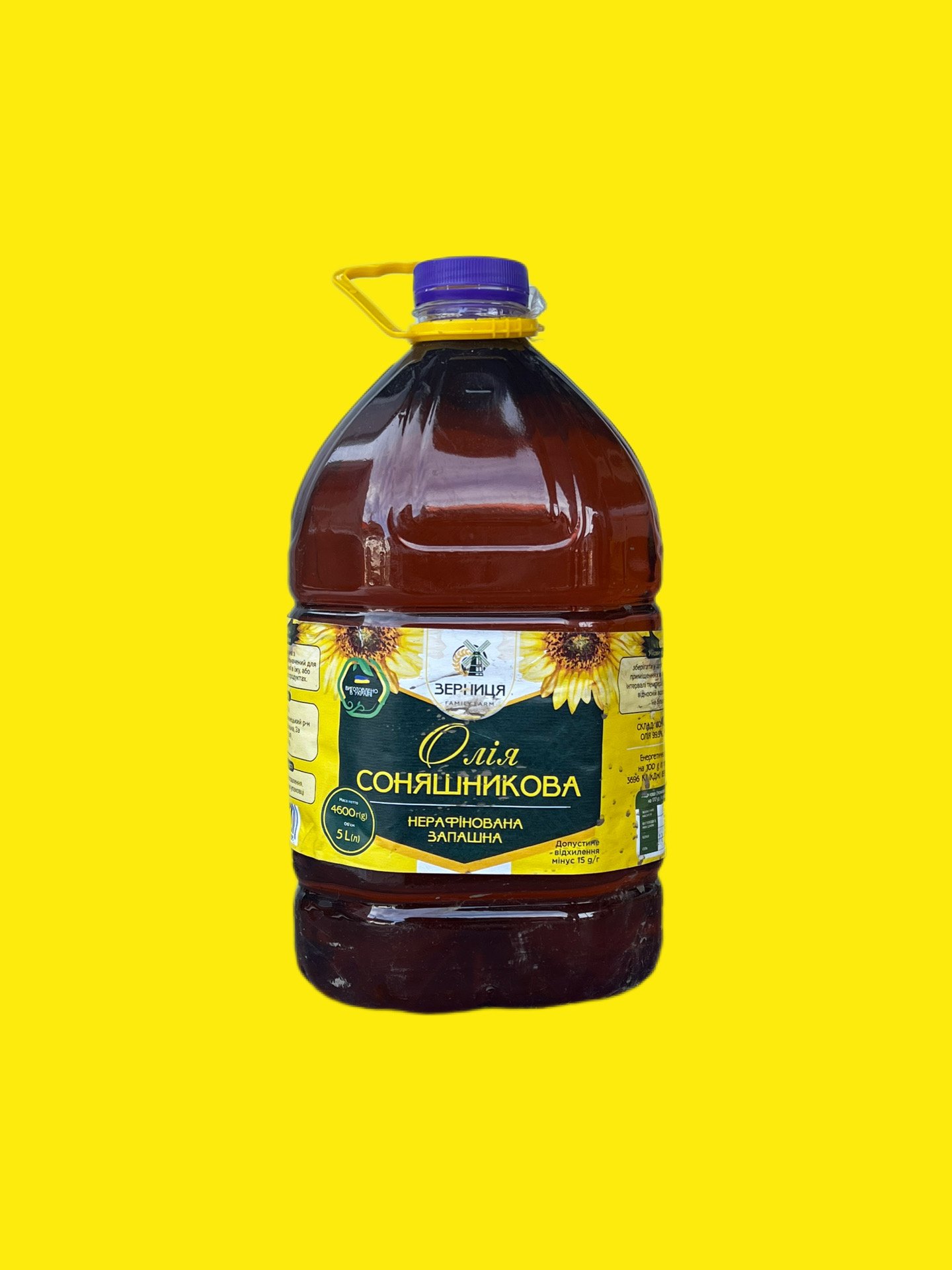 Соняшникова олія Зерниця виготовлена зі 100% чистих та якісних соняшників, вирощених у безпечних екологічних умовах. Технологія першого віджиму дозволяє зберегти всі корисні речовини — вітаміни, антиоксиданти та ненасичені жирні кислоти, які позитивно впливають на організм. Ця олія не містить штучних домішок чи консервантів, що робить її чудовим вибором для здорового харчування.