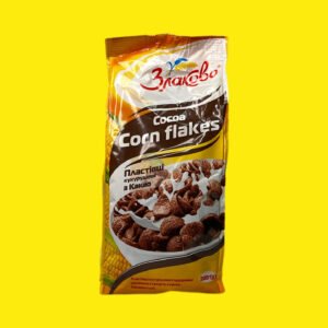 Пластівці кукурудзяні глазуровані з какао – легкі зернові пластівці з цукровою глазур’ю та додаванням натурального какао. Вони чудово підходять для здорових сніданків, якщо залити їх молоком або соком. Так само пластівці можна використовувати як смачний перекус протягом дня.