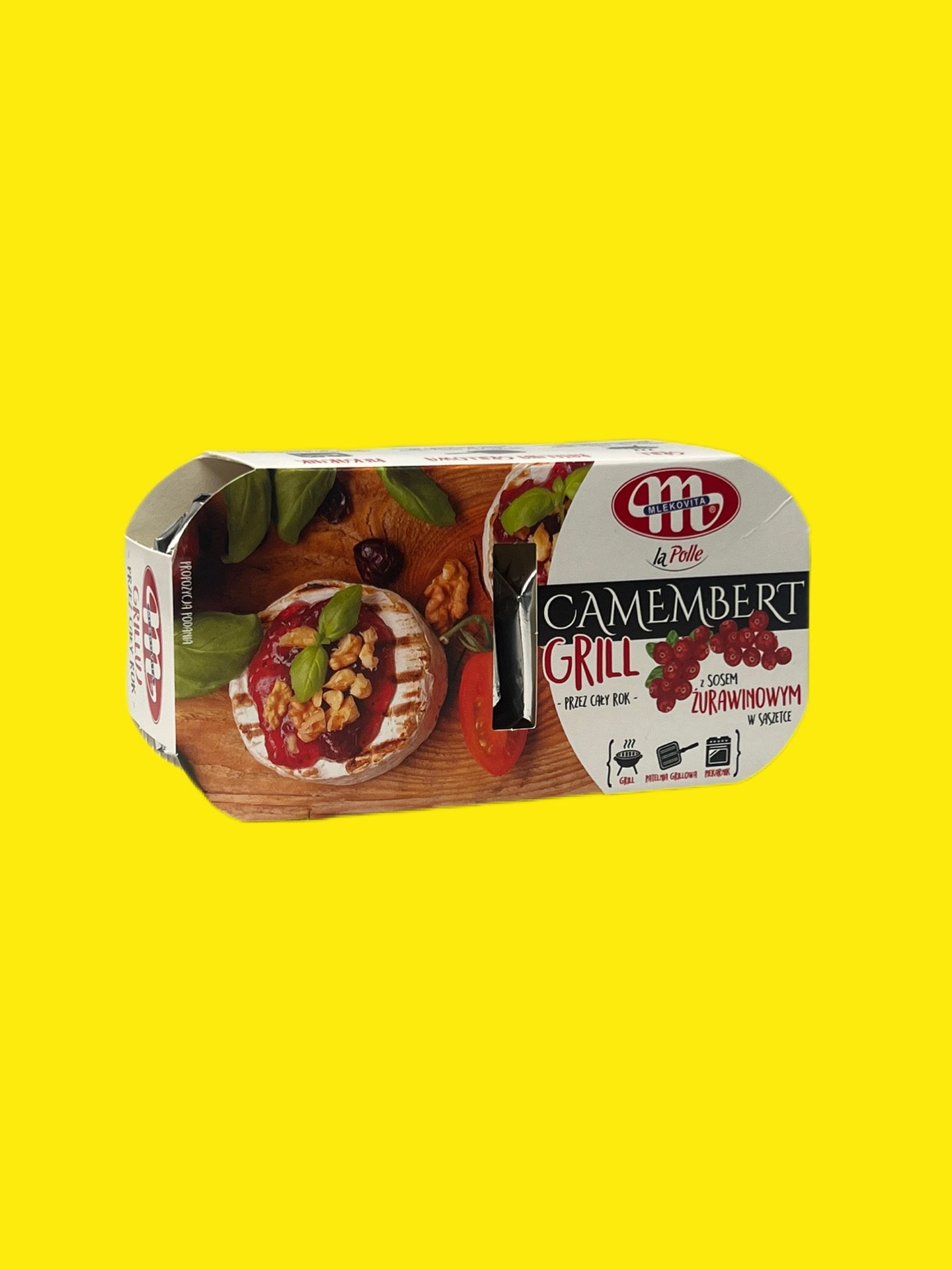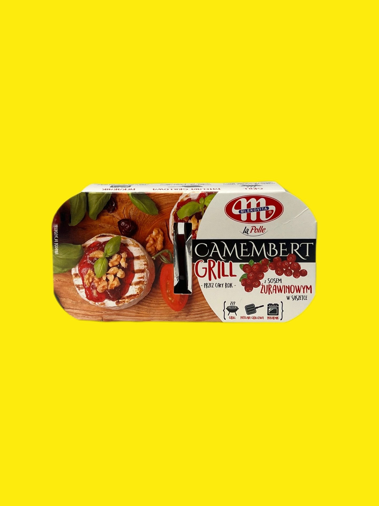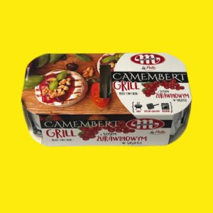 Сир камамбер для грилю з соусом — це спеціально розроблений продукт для приготування на грилі або сковороді. Він має ніжну кремову текстуру та вкритий тонкою білою скоринкою, що утворюється завдяки благородній плісняві.