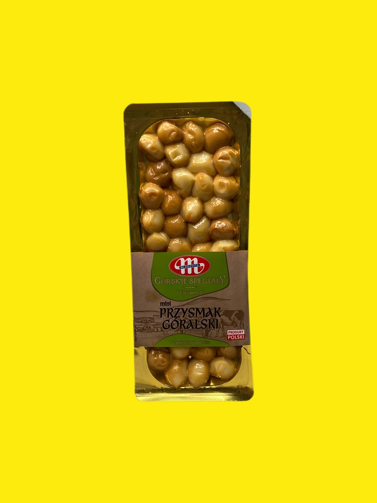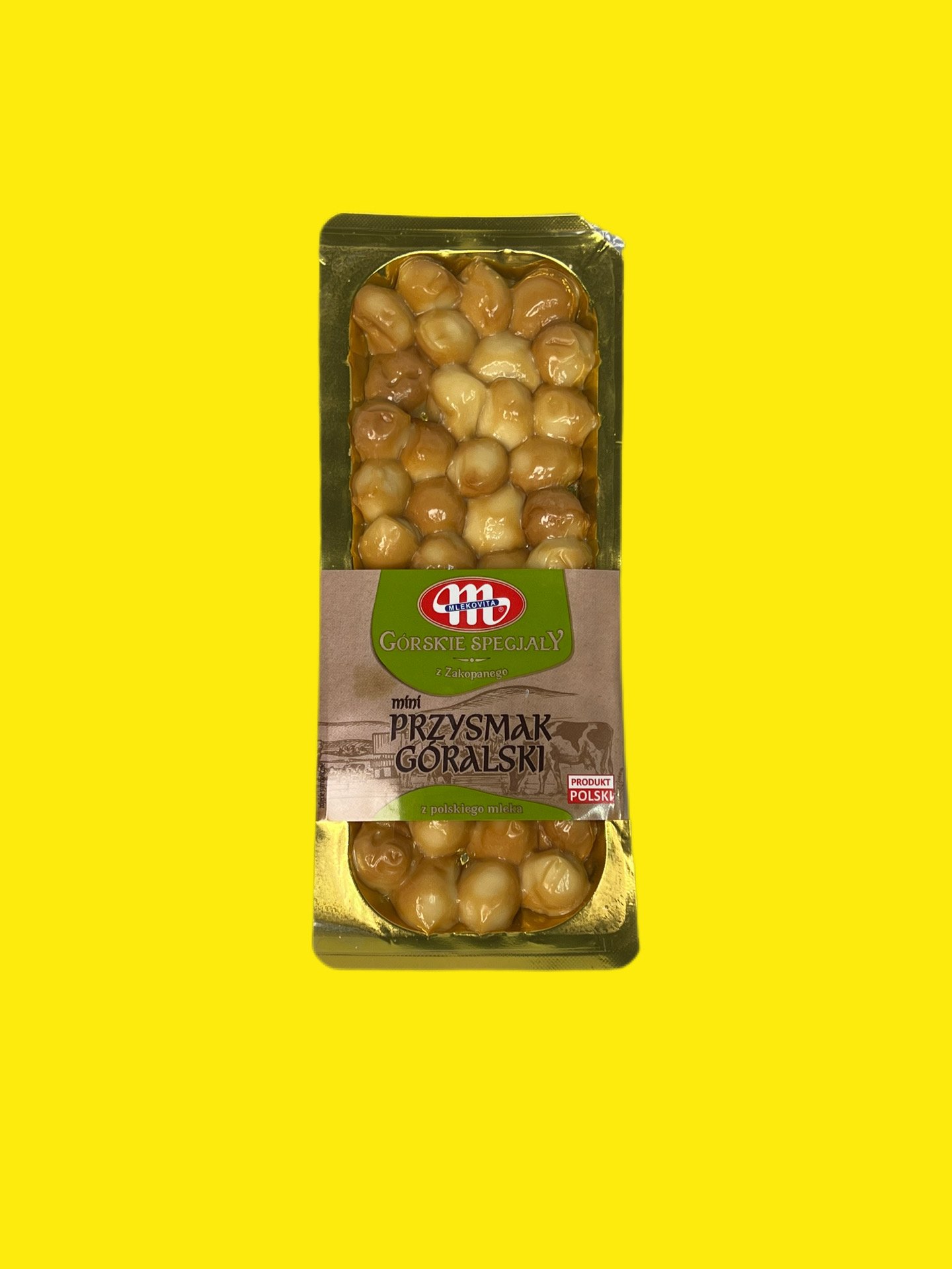 Сир копчений міні- кулька – це традиційний польський сир у формі міні-кульок, виготовлений з високоякісного пастеризованого коров’ячого молока та копчений для надання характерного аромату. Він ідеально підходить для сирних тарілок, грилю, салатів або як самостійна закуска.