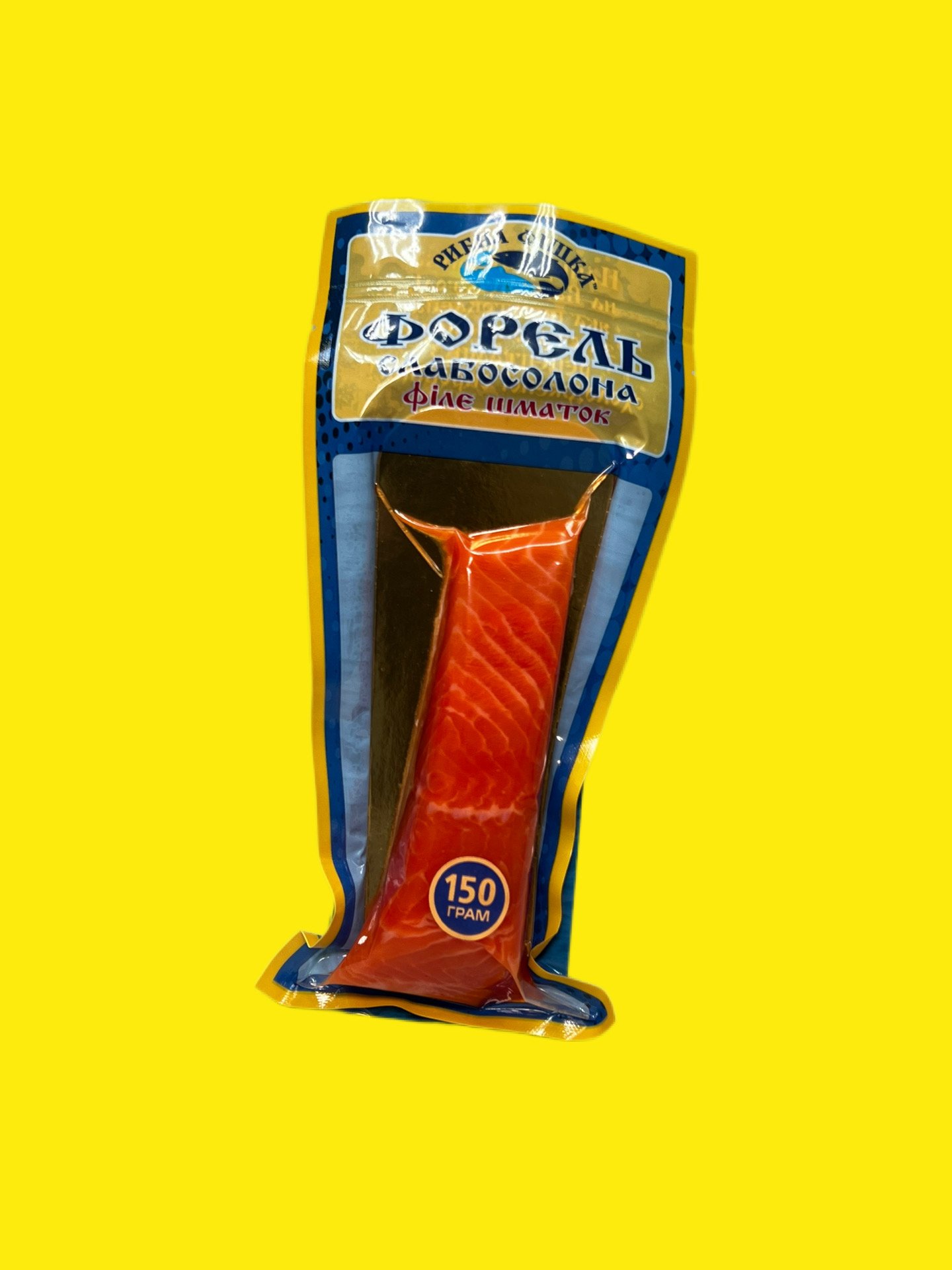 Слабосолене філе (сьомга/ форель) Рибна фішка150г – це філе з добірної охолодженої риби, приготовлене за традиційними рецептами з мінімальною кількістю солі.