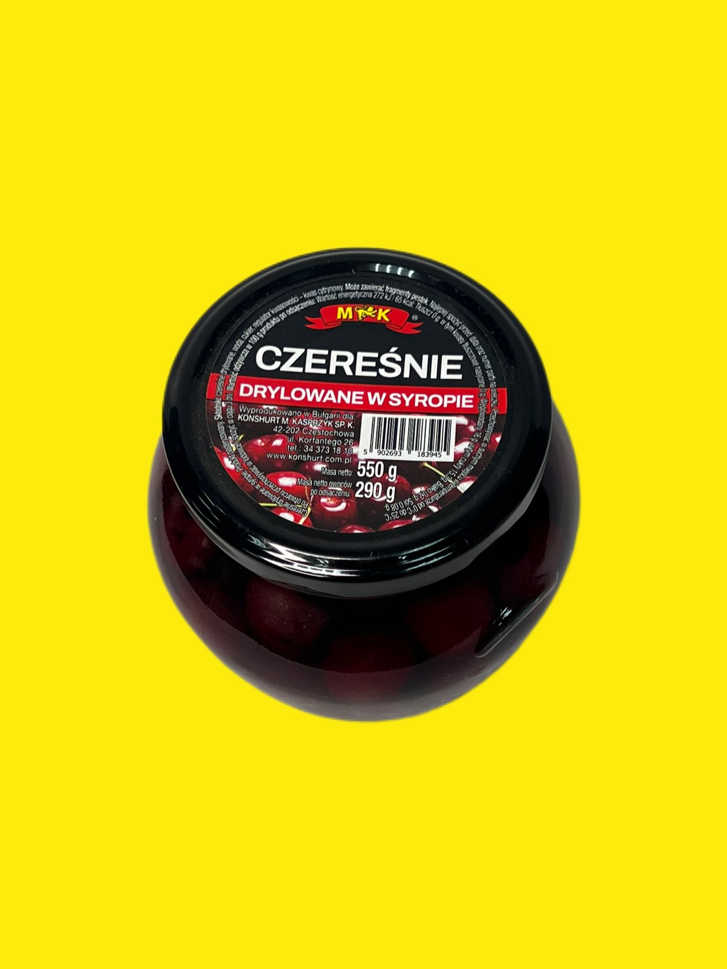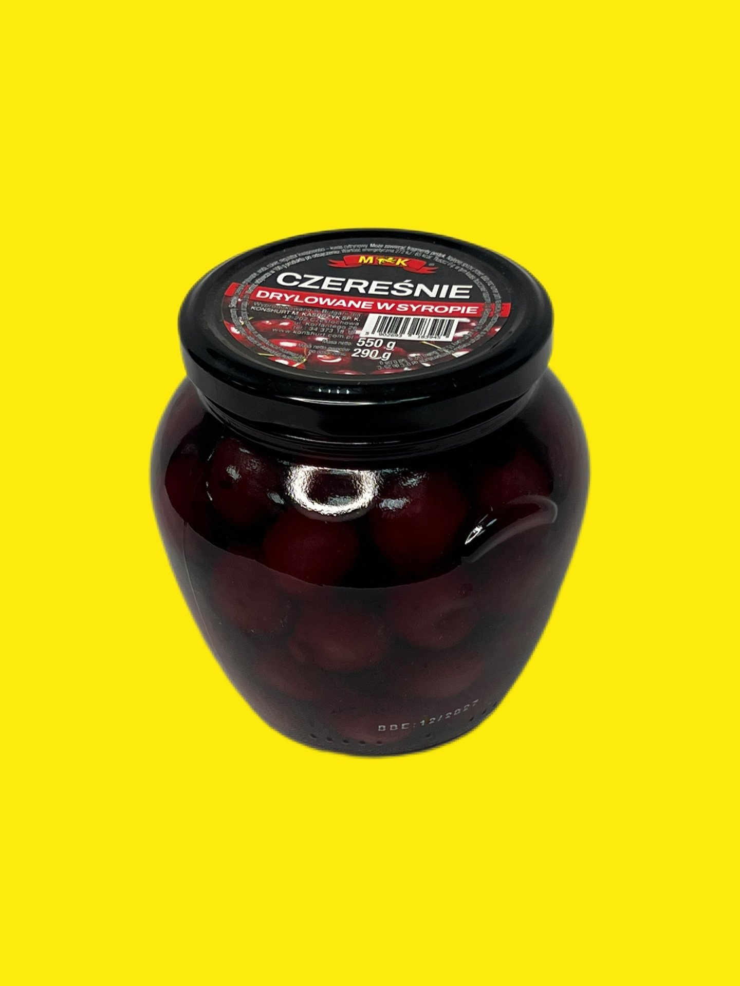 Консервована черешня в сиропі — це продукт, що складається з ягід черешні без кісточки у сиропі. Вона зберігає форму та яскравий колір, має ніжний фруктовий смак і використовується як додаток до десертів, млинців та оладок.